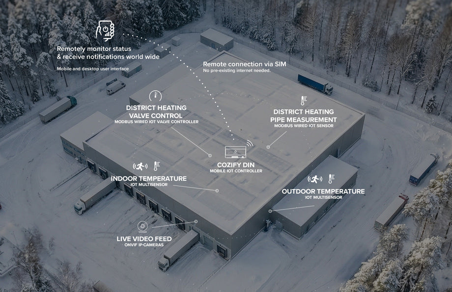 Note: Network connectivity is required for remote monitoring and control. Cozify Smart IoT controllers are built offline/local-first, meaning they can still operate locally without a network connection, on top of the original fallback solution (the legacy system).